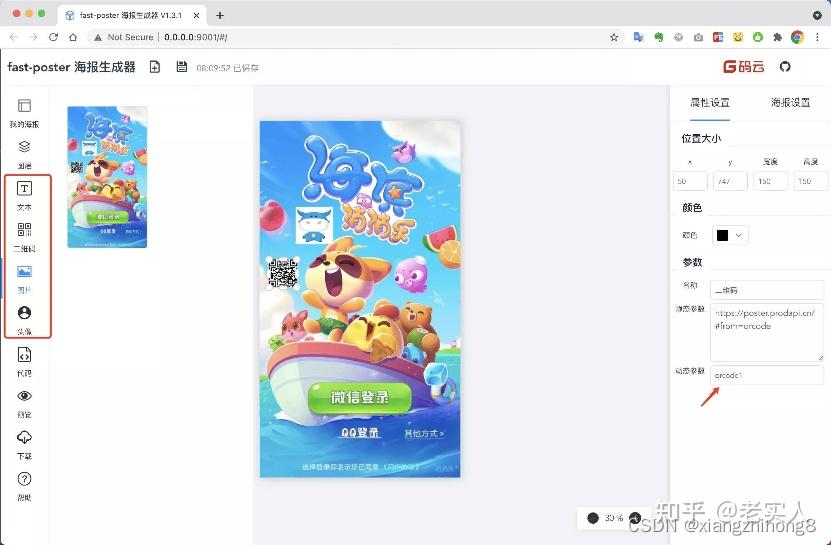 fast-poster是一款使用Python+Vue开发的通用海报生成器,可以用来快速的生成海报。使用时知需要经过三步即可生成所需要的海报:启动服务 > 编辑海报 > 生成代码。