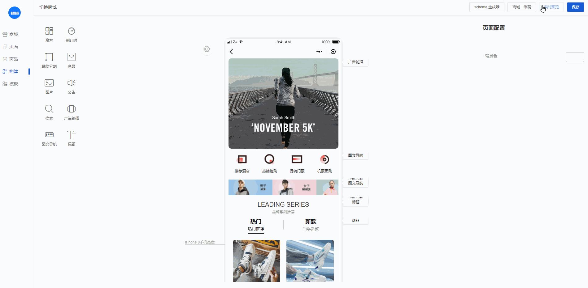 Mall-Cook 是一个基于 vue 开发的可视化商城搭建平台,包括多页面可视化构建、Json Schema 生成器(可视化搭建物料控制面板),实现组件流水线式标准接入平台。最新版本使用 uni-app 重构物料、模板项目,支持生成 H5、小程序多端商城。