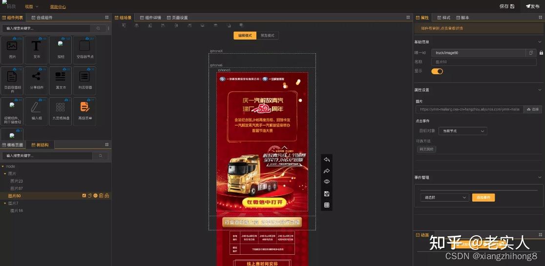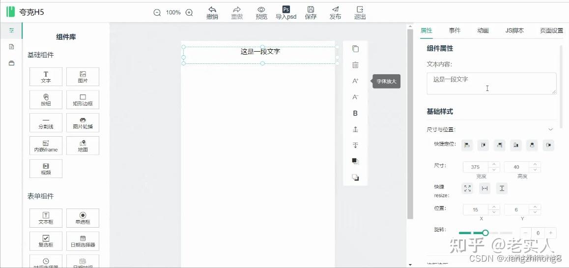 lz-h5-edit是一个H5低代码编辑平台,支持拖拽、缩放、旋转、动画、撤销、重做、组合元素等方式来创建H5页面。