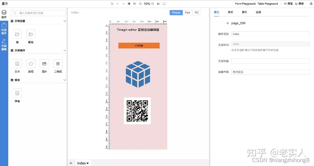 tmagic-editor是一款由腾讯技术中心出品的一款开源低代码框架,能够实现零代码/低代码生成页面 , 可以快速搭建可视化页面生产平台,让非技术人员可以通过拖拽和配置,自助生成H5页面、PC页面、TV页面,大大降低页面生产成本 。