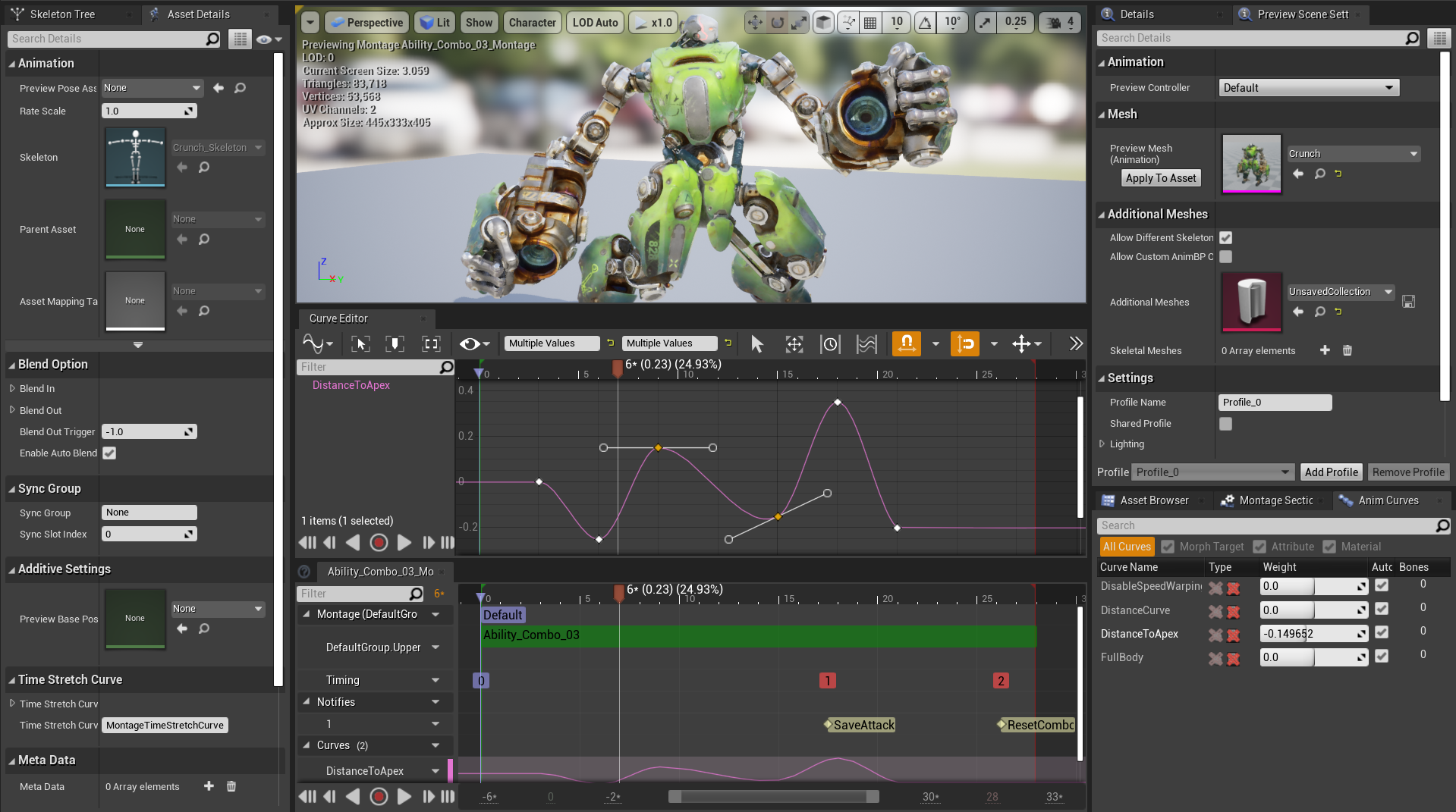 - 姿势、曲线、混合权重、动画图表、蒙太奇和动画通知轨迹