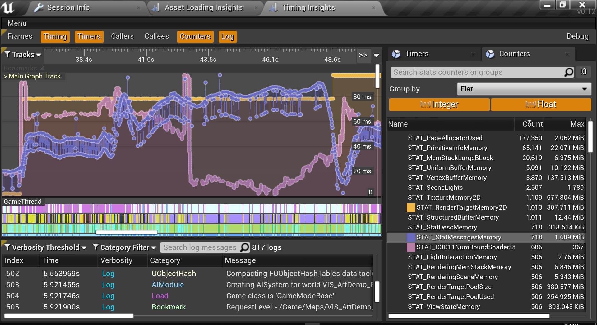NOTE:欲知详情,请参阅Unreal Insights 。