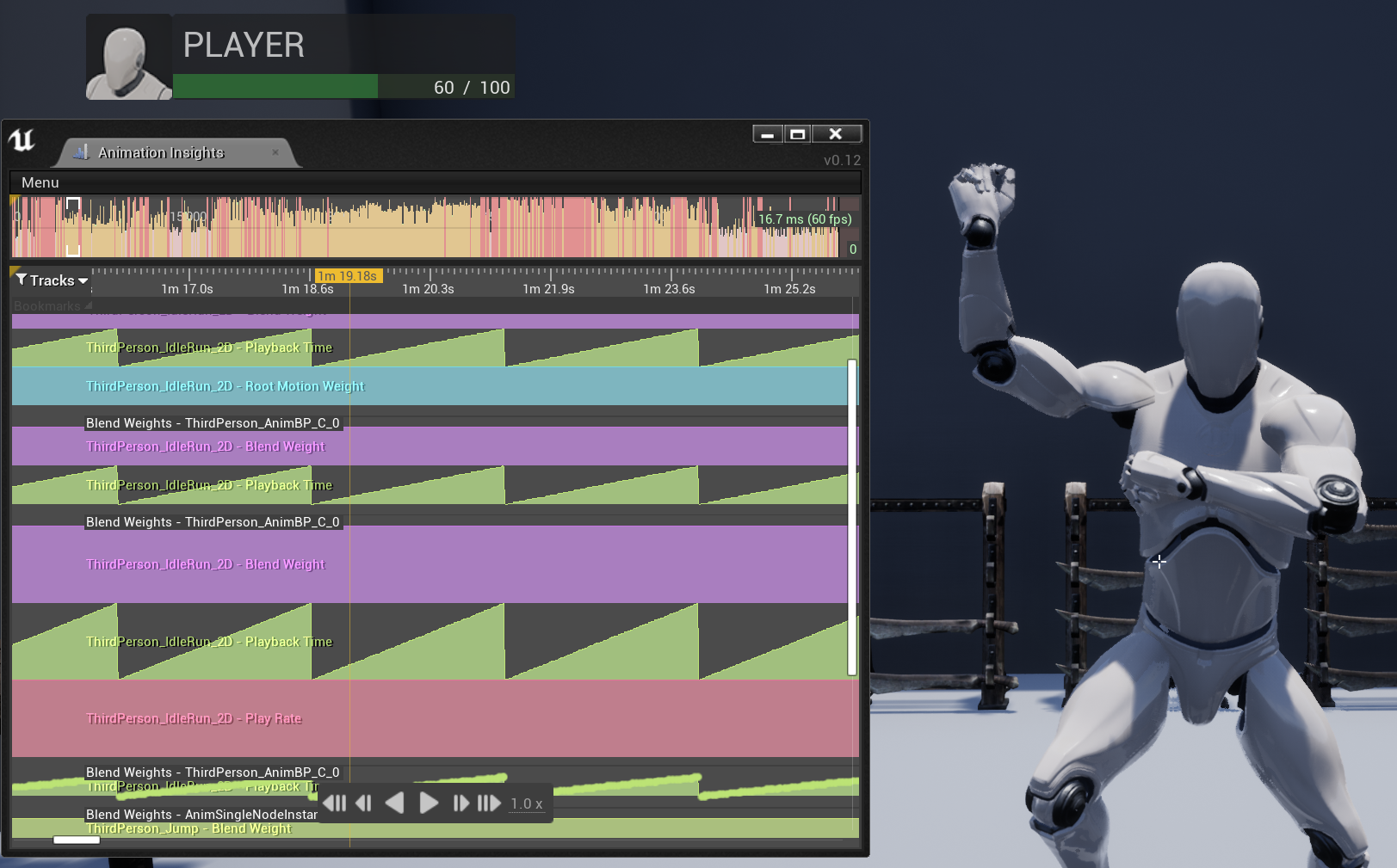 新版本中,编辑器拥有 Animation Insights 插件,可显示gameplay状态和实时动画行为。用户可以使用以下功能记录追踪信息,以显示动画行为: