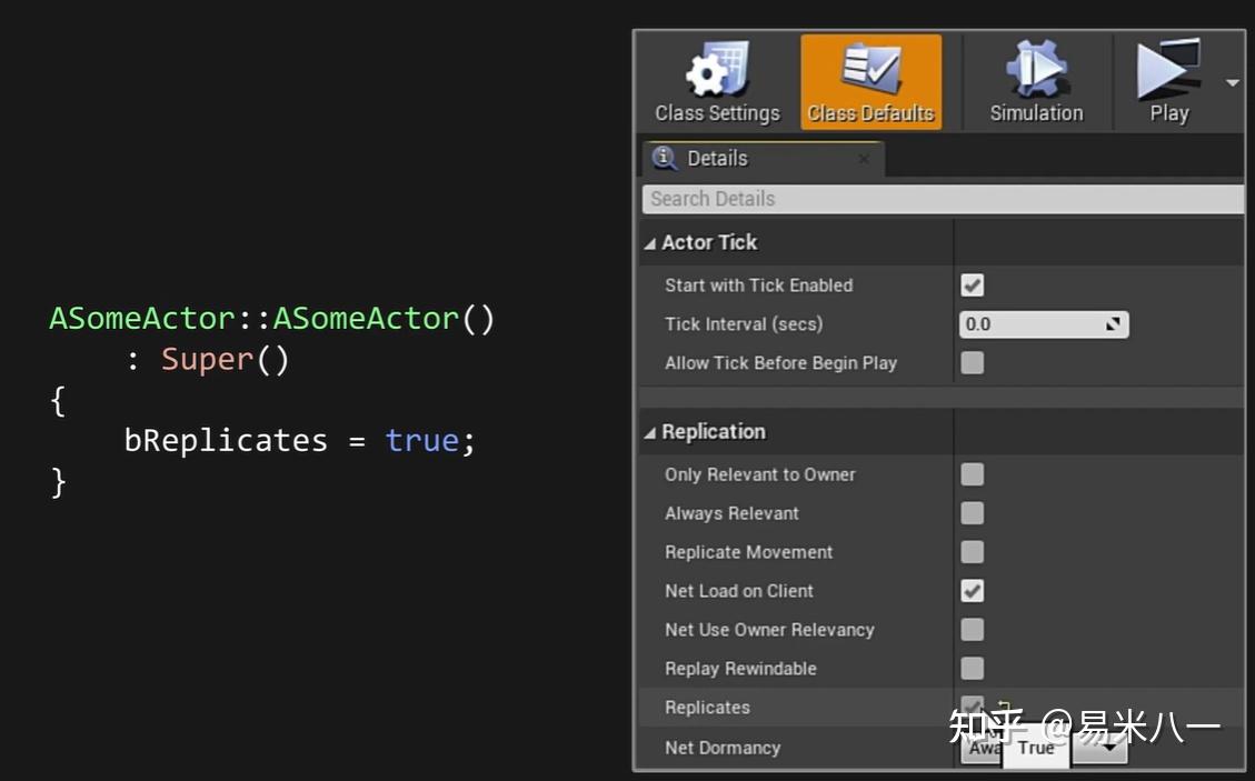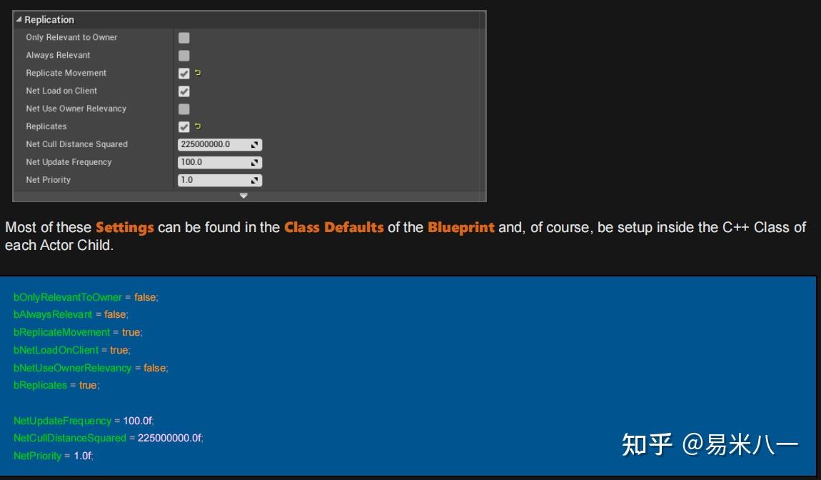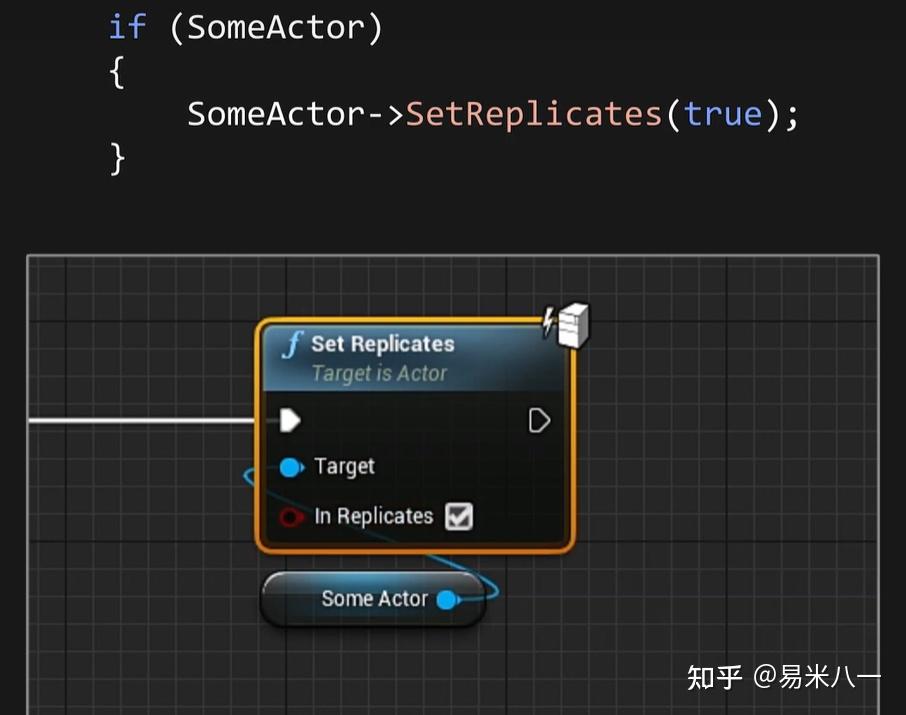 • 回归正文,如果你希望一个Actor对象在网络上保持同步,那你就需要将这个Actor的bReplicates设置为true,告诉引擎你需要复制这个Actor。(这里有一个注意点就是一个Actor参与复制,不代表它的所有部分都需要使用网络功能的代码。)