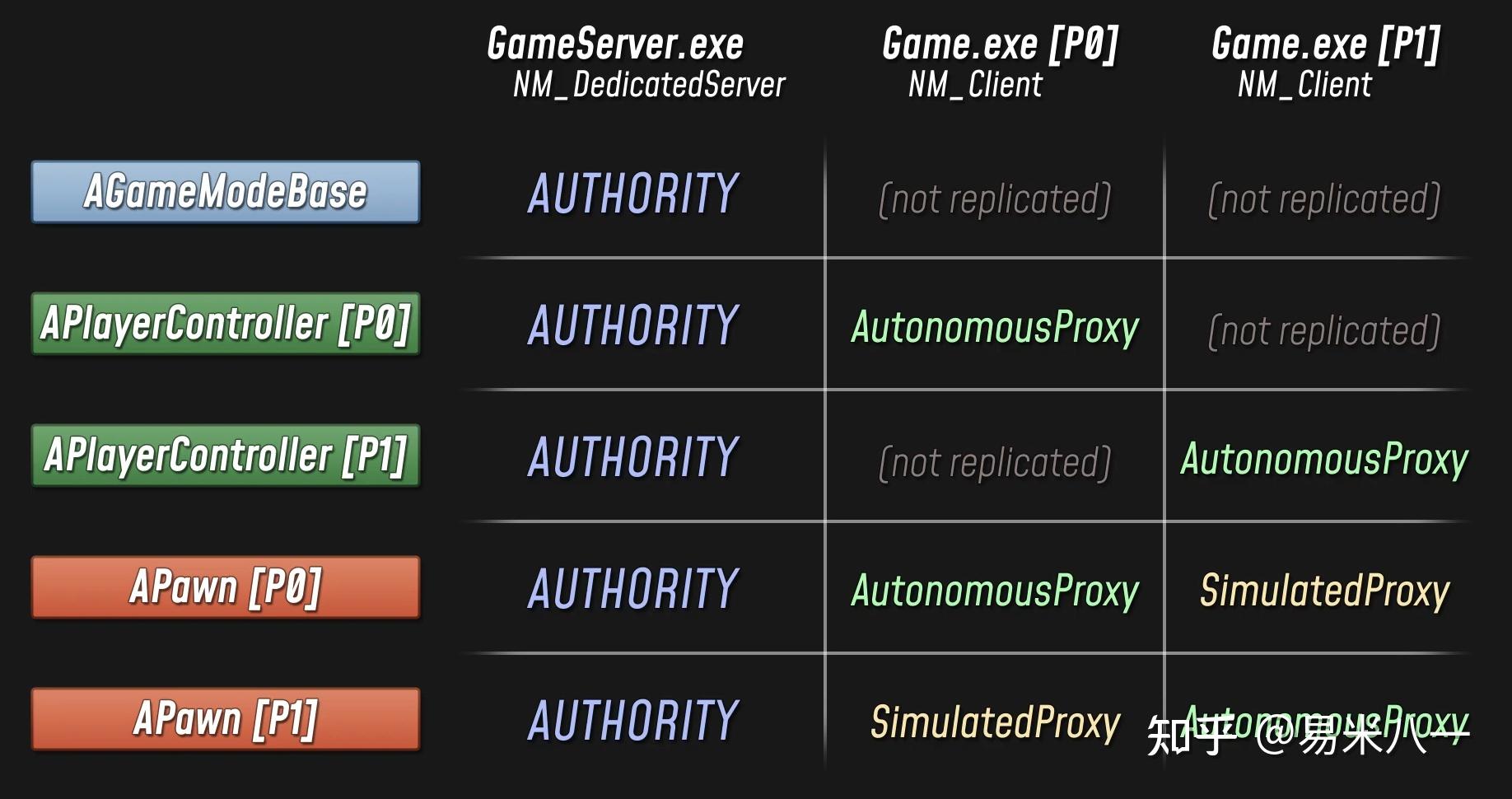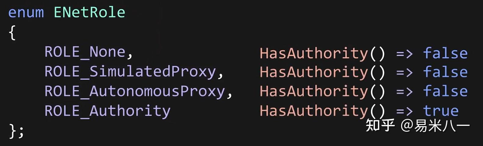 • 如果 Role 是ROLE_Authority,RemoteRole 是ROLE_SimulatedProxy或ROLE_AutonomousProxy,就说明这个引擎实例负责将此 Actor 复制到远程连接。