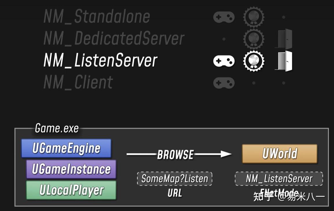 • 我们是服务器吗?换句话说我们的GameInstance是否具有World的规范、权威副本,其中包含GameMode 。