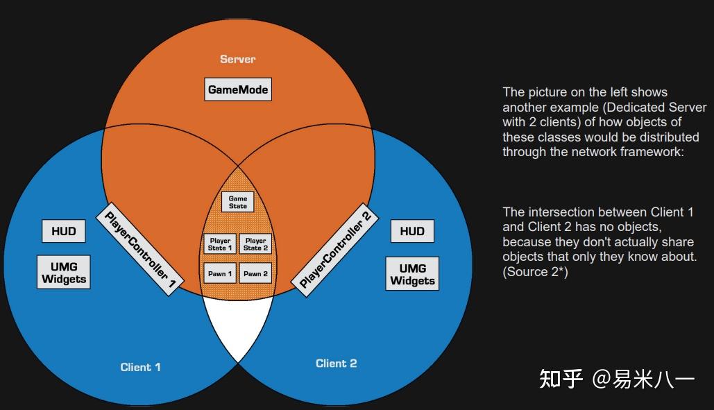 • 在虚幻引擎中,其采用的网络模型是C/S模型,网络中的一台计算机作为服务器主持多人游戏会话,而所有其他玩家的计算机作为客户端连接到该服务器。然后服务器与连接的客户端分享游戏状态信息,并提供一种客户端之间通信的方法。