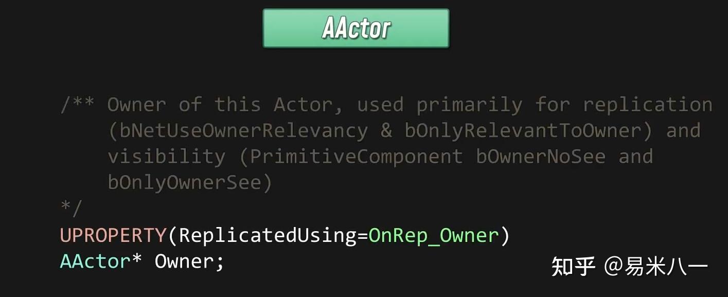 • Owner(拥有者),每个Actor都能指定另一个Actor作为自己的拥有者,一般在生成Actor的时候指定。或者在运行时调用SetOwner指定. 官方注释此属性主要用于复制(bNetUseOwnerRelevancy&bOnlyRelevantToOwner)和可见性(PrimitiveComponent bOwnerNoSee和bOnlyOwnerSee)