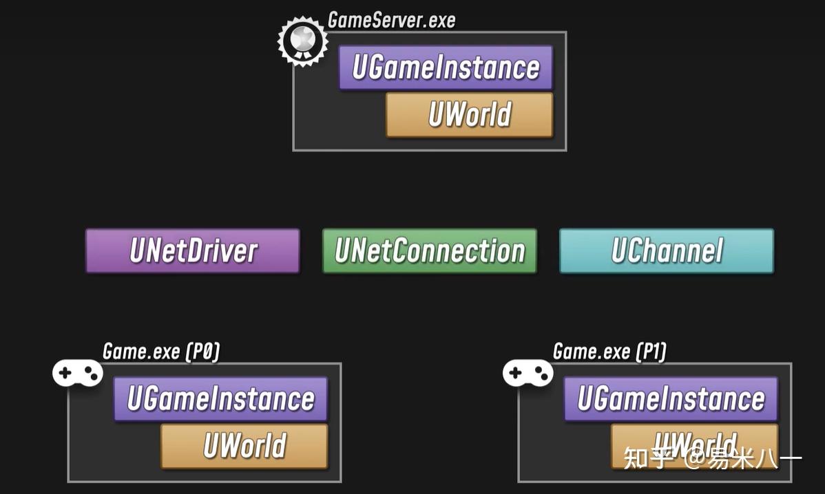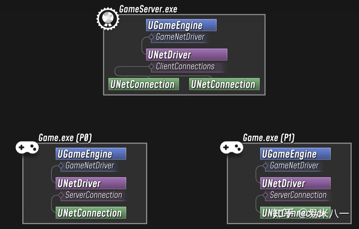 Replication系统为了让它们对游戏世界发生的变化保持一致看法,依赖于三个主要的类:UNetDriver、UNetConnection和UChannel。