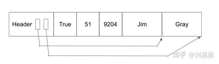 VLR 将所有固定长度字段存储在可变长度字段之前,并使用包含指向可变长度字段末尾的指针的记录头.