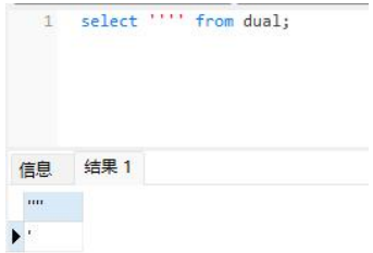 例如上面这个SQL,两个字符串连在一起,那么是输出拼接后的nameis还是 name’is?其实这边看似两个字符串,其实中间的两个单引号是转义,所以结果是 name’is. select'name''is'fromdual;#中间引号为转义的单引号