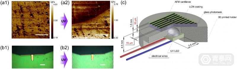 包含AFM悬臂、LCN图层、玻璃光掩模、紫外线LED、电线等元件