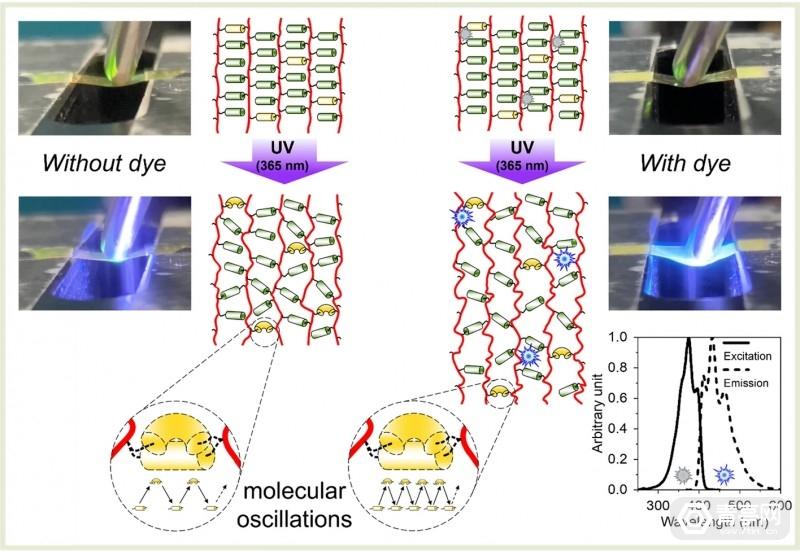 除此之外,科研人员还展示了在LCN材料结构中加入荧光染料,大幅放大器模量(涂在玻璃表面上模量可提升280%),并展示了自适应模量效应从独立薄膜到涂层的转化,以及应用于样品局部位置的效果。