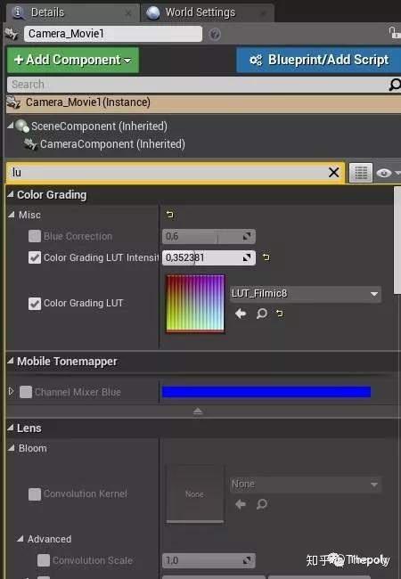 在这之后,我在摄像机设置里添加了LUT,我找到LUT预设,选择最适合我场景的,略加修改了对我场景的影响。