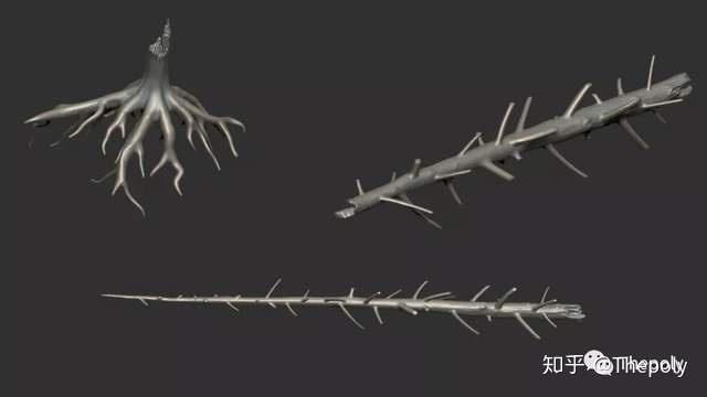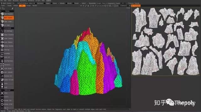 对于天然物体资源的低模,我通过自动减面来创建,通常是在zbrush中制作。然后我在3Dcoat中调整低模以及UV,这俩工具对于这一类的东西的UV制作十分的友好方便。