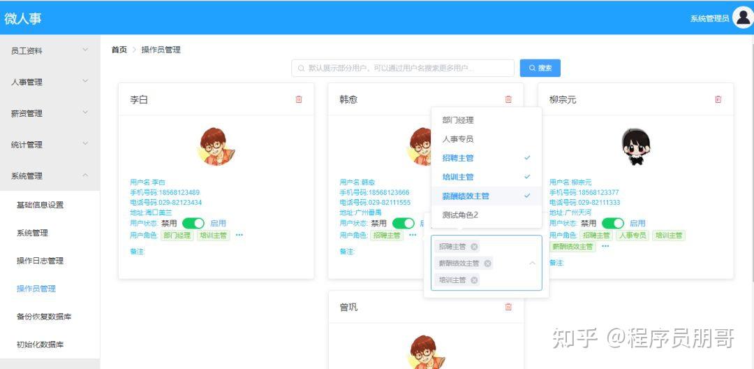 权限管理相关的模块主要有两个,分别是 [系统管理 -> 基础信息设置 -> 权限组] 可以管理角色和资源的关系, [系统管理 -> 操作员管理] 可以管理用户和角色的关系。