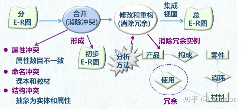 分E-R图的集成:在得到分E-R图之后,为了提高数据系统的效率,需合并之形成总E-R图。