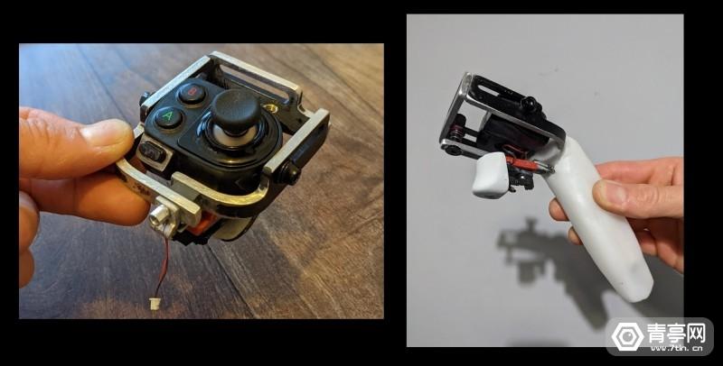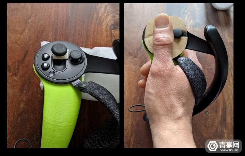为了调试HDK在手柄上的效果,Cole首先在枪柄上固定了一个T型定位传感器,来代替具体的手柄面板。