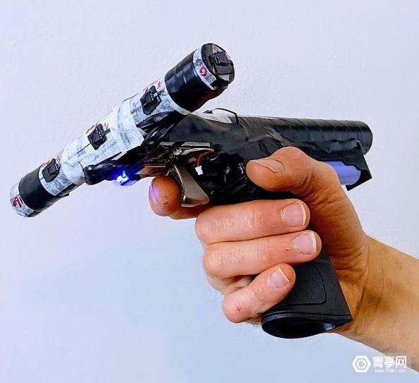 Caliper原型还配备了一大块可充电锂电池,电池的重量平衡了手柄T型定位杆的重量,同时模拟了手枪的重量感。Cole认为,这种酷似手枪的VR手柄将很适合《Pistol Whip》等VR射击游戏。