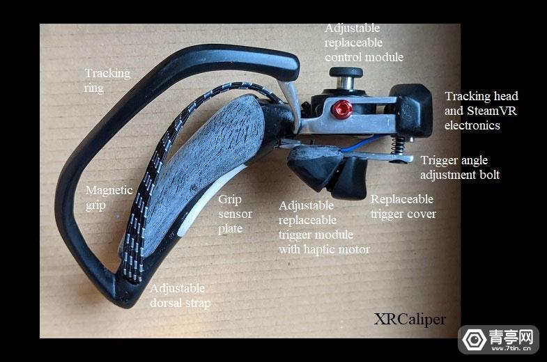 于是,Caliper采用了从内部加固的特殊形状扳机盖,而且采用可拆卸设计,允许用户更换不同尺寸、形状、材料的扳机盖。除此之外,Caliper手柄上的整个控制模组和扳机模组都可以实现快速安装和拆卸,握柄的盖也可以更换。