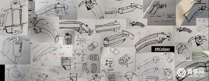 Caliper手柄的握柄部位尝试了多种设计,包括贴合特定手型的异形、偏离中心的椭圆形,其中椭圆形的握柄可以通过上下颠倒来适应不同的手型。而且,还尝试了不同的绑带、固定板、握柄、输入元件,还设计了垂直使用的握柄,以及倾斜的握柄。