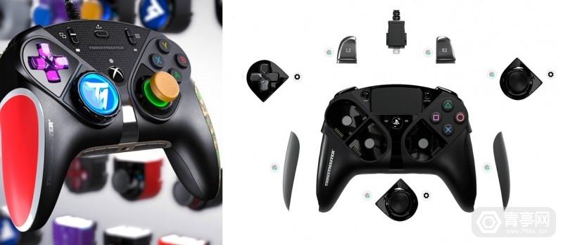 其中,Thrustmaster X Pro E-Swap是PlayStation的第三方游戏手柄,其特点是采用模块化设计,为用户提供低成本的自定义升级套件(方向键、侧把手、摇杆、触控板等等),以及不同色彩、纹理和样式的配件。同时Thrustmaster还提供软件,支持按钮映射、E-Swap输入设置、摇杆完全调整等功能。如果未来商用的VR手柄也能支持这种模块化设计,可能会带来各种有趣的用法。