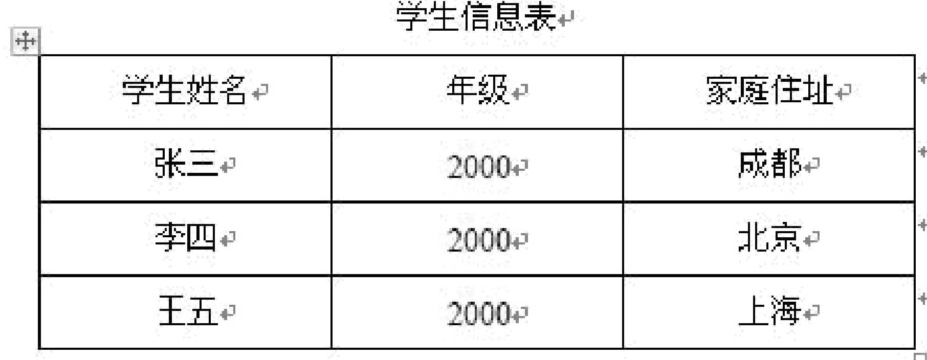 关系模型是以二维表(即有行和列,字段列和记录行)来描述数据,就像一个 Excel表格。例如: