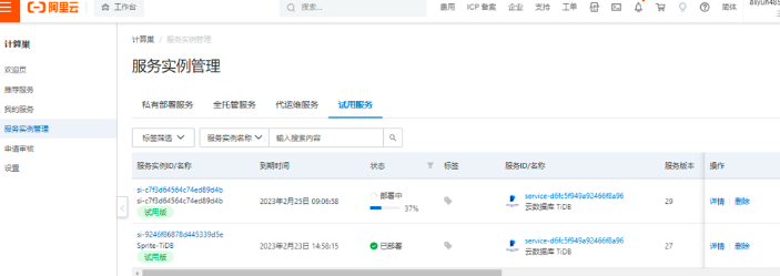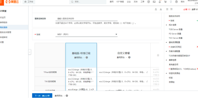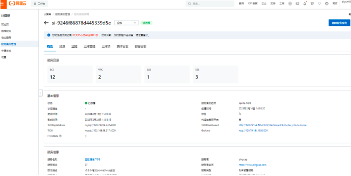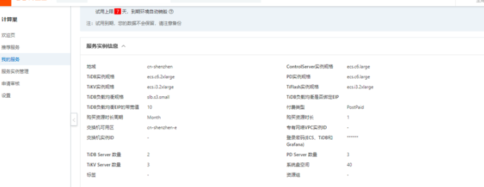 试用资格申请好后,就尝试着来部署云数据库TiDB服务了;根据自己这两天对阿里云计算巢的摸索,下面就介绍下如何在计算巢中部署我们的云数据库TiDB服务。