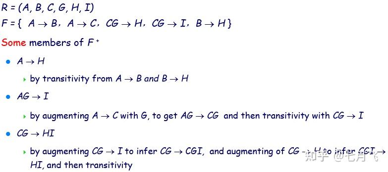 - F 逻辑蕴含 (F - \{\alpha \rightarrow \beta\}) \cup \{\alpha\rightarrow (\beta-A)\}