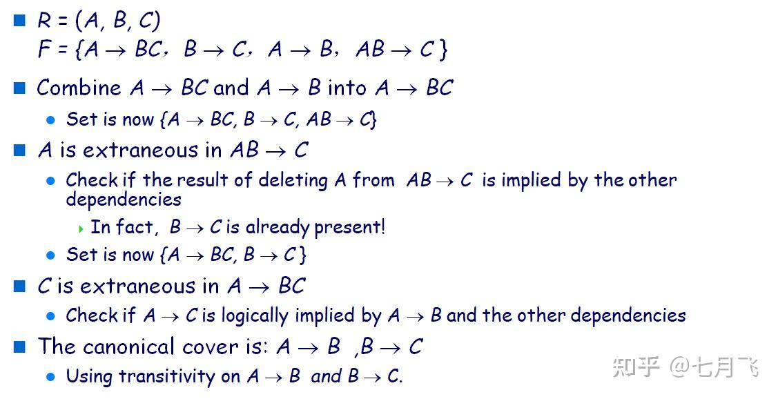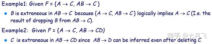 - 无关属性:去除函数依赖中的一个属性,不改变函数依赖集的闭包,则是无关的extraneous。以 \alpha \rightarrow \beta 为例