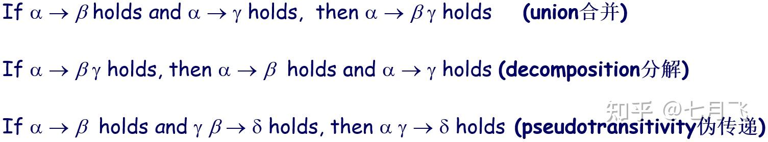 - 如果 \beta \subseteq \alpha^+ 则函数依赖 \alpha \rightarrow \beta 成立