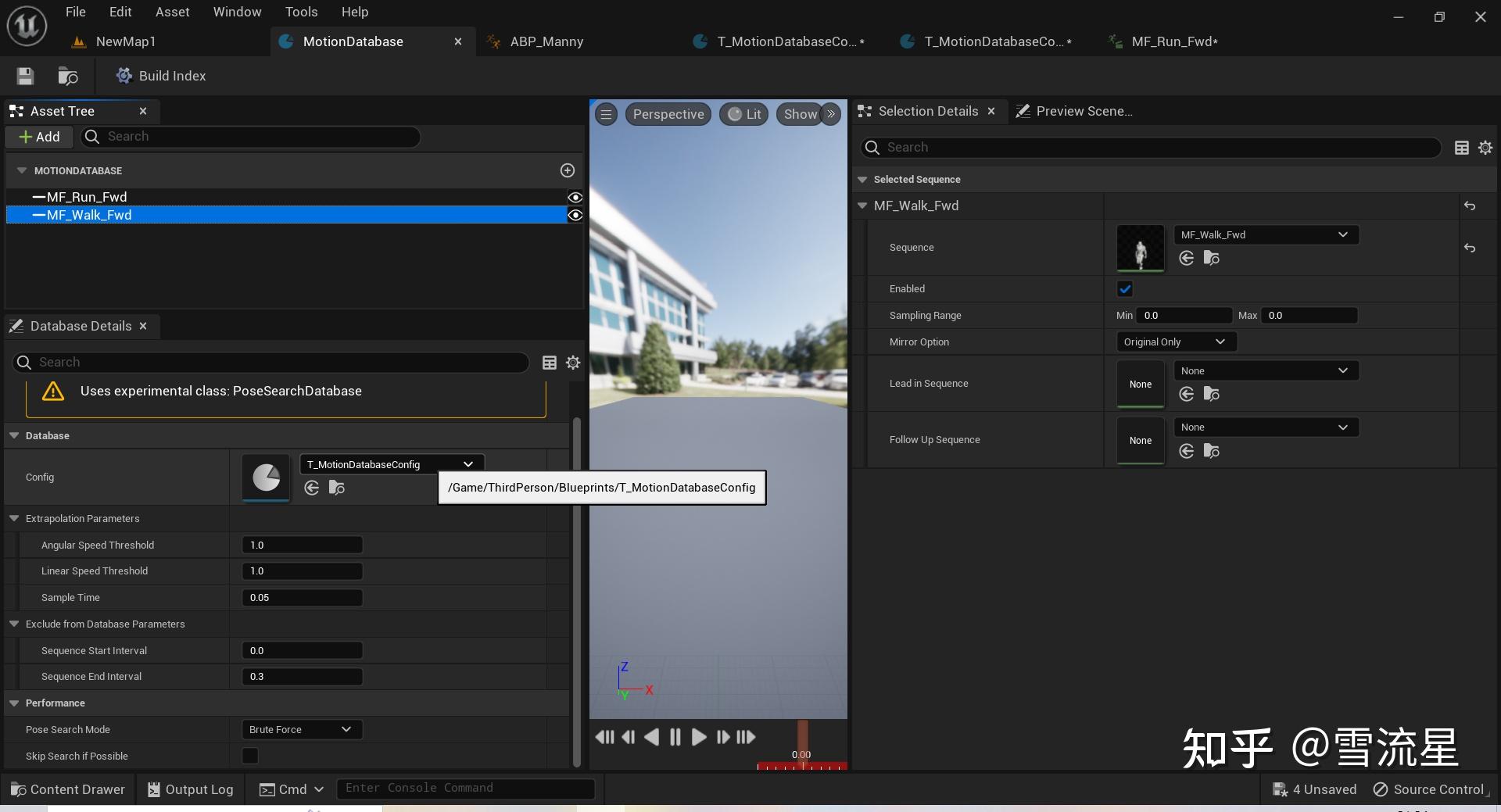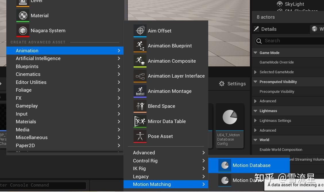 首先要创建动画数据库,用于将动画Sequence应用在MotionMatching上,所有候选Pose都来自于此,创建数据库的方式很简单,如下:
