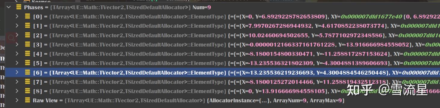 有了这些特征数据,接下来是做运算,如何利用这些数据计算出最佳的候选Pose,这里直接说UE5.1MotionMatching的算法:UE5将每个Pose的特征数据,包括上面提到的位置旋转等信息存在一个数组当中组成特征向量,然后将当前Pose的特征向量中的每一项数据与除去本身外所有Pose的特征向量中的每一项数据依此做减法,然后平方(防止出现负数),再计算每一项的和,就是切换到每一个Pose对应的Cost,取出Cost最小的Pose,就是下一个要播放的动作了。举一个简单例子: