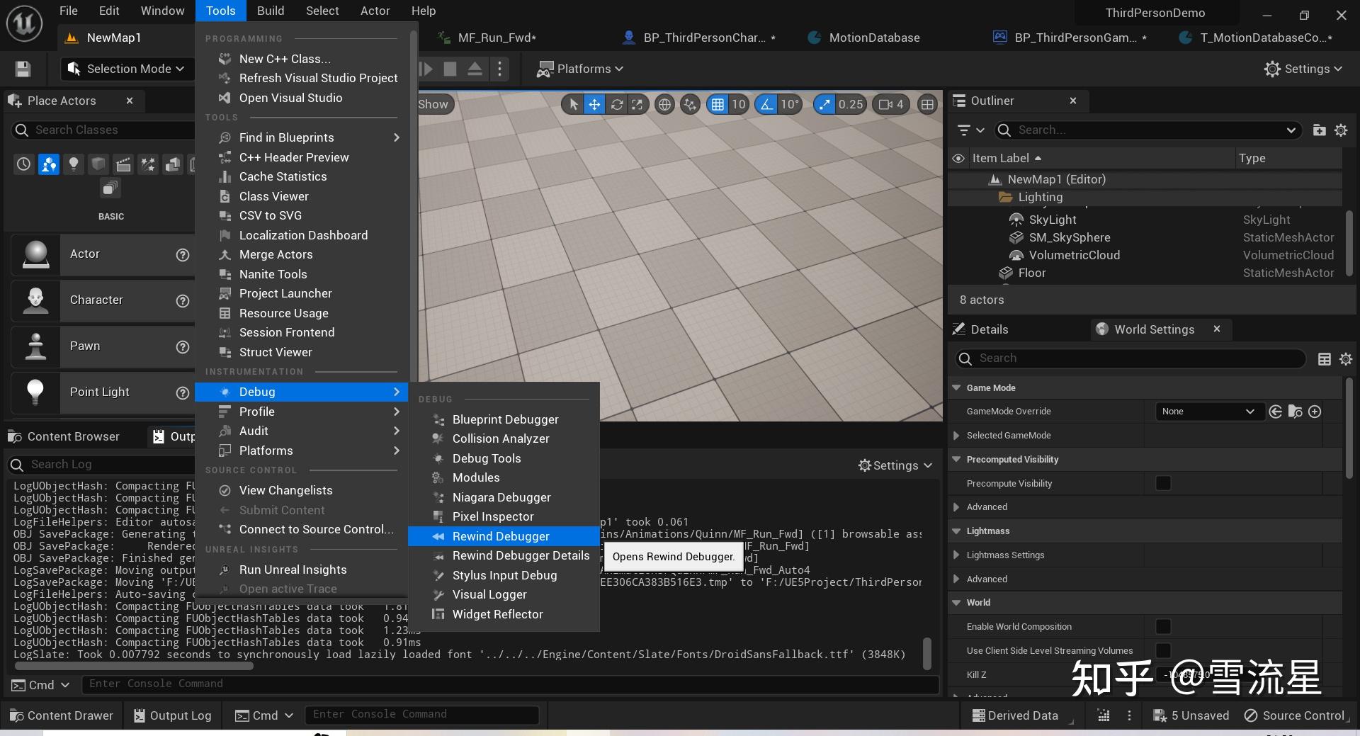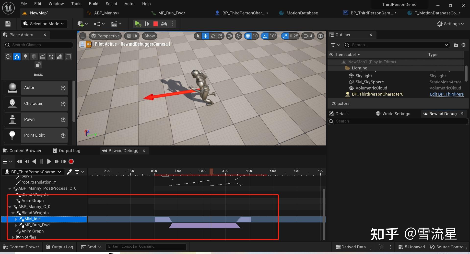 使用方式:运行后点击红色录制按钮,然后移动角色,左侧会显示记录的Actor列表,然后暂停游戏,停止录制,拖动滑动条查看录制过程数据。此工具不仅仅可以调试MotionMatching,还可以调试状态机和动画切换详细信息,只不过有了它,MotionMatching调参才真的容易很多。