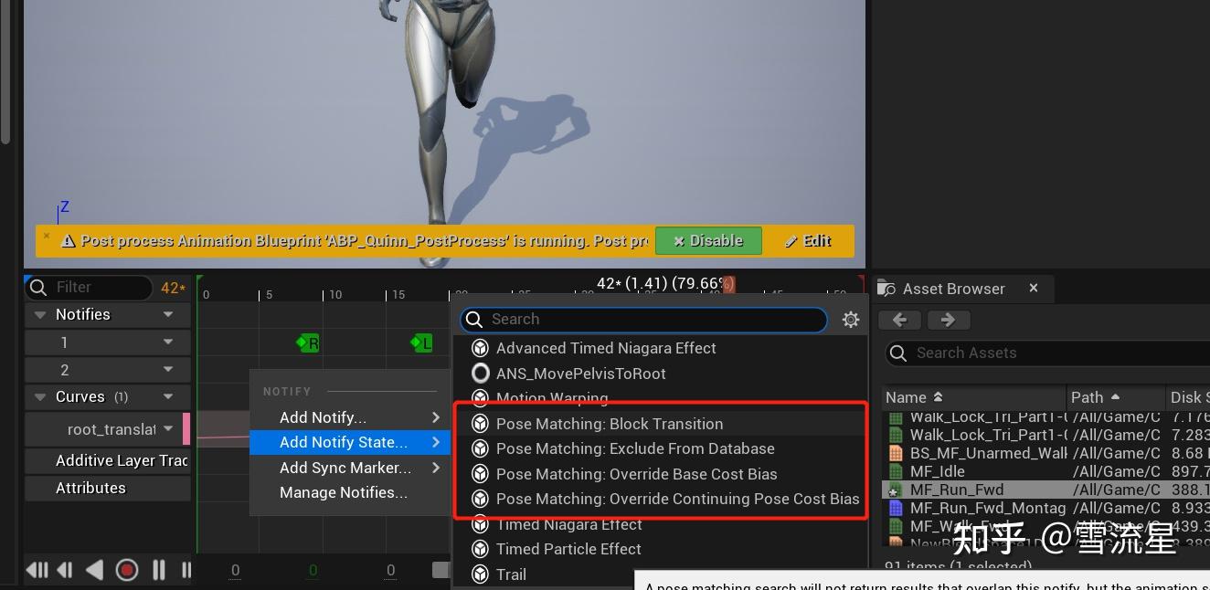 本来想等到UE5正式版MotionMatching出来之后再写的,前几天发布的UE5.1版本的MotionMatching依然是实验版本,存在bug不少,不过看来核心思路与算法以及功能几乎不会变了,所以现在写也还好。对于MotionMatching的使用,主要分为两个部分,一是通过动捕获取动画资源,动捕数据需要遵循一些标准,并不是数据越多越好,二是通过已有动捕动画进行配置调参,而想要配置出出色的效果,就需要理解MotionMatching算法原理以及各个参数的意义,本文重点讨论后者内容,帮助大家快速理解UE5.1.1中MotionMatching的核心算法与参数的意义,以及如何调参达到想要的效果。 MotionMatching原理