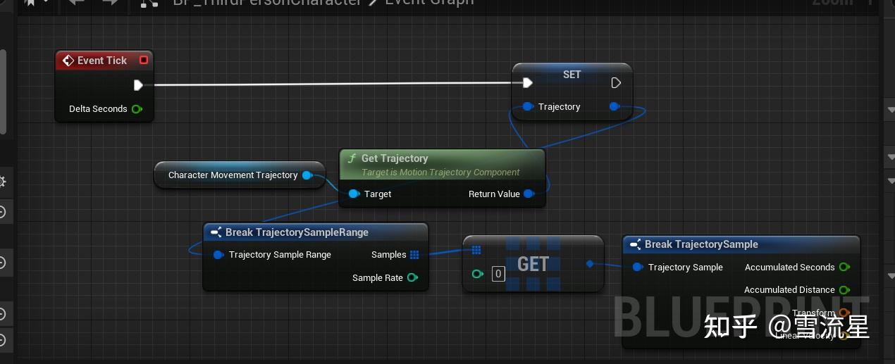 有了预测轨迹,动画数据库,特征向量配置,接下来就是实际应用MotionMatching了,使用很简单,在状态机里连下面的蓝图: