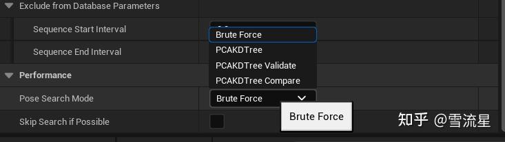- Pose Search Mode:选择算法,两个,一个暴力算法,一个KDTree,下面两个本质还是KDTree,只不过多了调试和合法判定。KDTree底层调用的是nanoflann库,没细研究过,有兴趣的话可以自己看看。