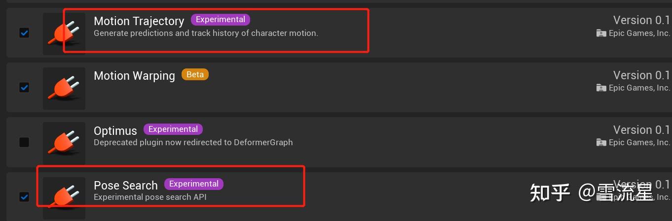 现在我们知道了核心算法,接下来开始为这个算法准备核心数据,首先是要有候选Pose的数据集,然后指定特征数据都有哪些就可以进行上述运算了,那么首先是Pose的数据集的设置。在准备数据之前,先开启MotionMatching的插件: