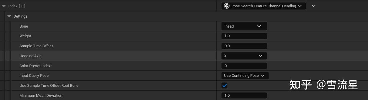 - Continuing Pose Cost Bias,Continuing Pose是指,在Search时正在播放Sequence的Pose的下一个Pose,Continuing Pose Cost Bias调大就意味着希望Search的过程尽可能保证姿势的衔接,防止频繁跳转出现错误