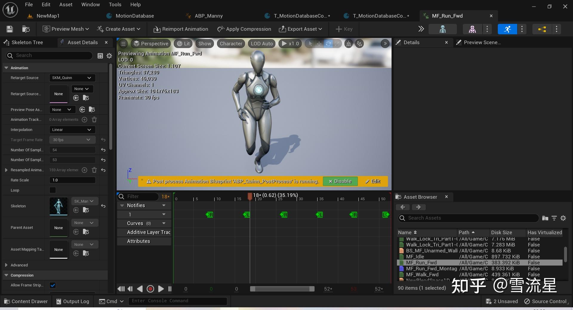 关于MotionMatching原理已经有很多文章介绍过了,这里只说UE5中的MotionMatching原理:首先虚幻中的动画序列(Sequence)是由一个个的Pose组成的,每个Pose之间进行插值得到完整的动画,我们在使用动画状态机的时候是以Sequence为基础单位进行播放,这样就存在常见的滑步现象(实际输入和动画播放的动作不对应),以及动画衔接的问题,MotionMatching就是为了解决输入和动画不匹配的问题,表现,但是No Free Launch,它带来的一些问题就是: