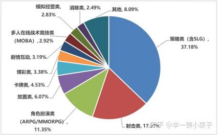 而MOBA及射击类游戏虽然占比也不小,但是这两种游戏类型几乎被头部几个IP垄断(大家都知道我在说哪几个),所以大部分公司在立项的时候会避开这两种游戏类型(射击类还有一定空间,MOBA市场已经被完全垄断,除非出现很大的创新及配合很强的运营能力才可能有那么一点点机会)。