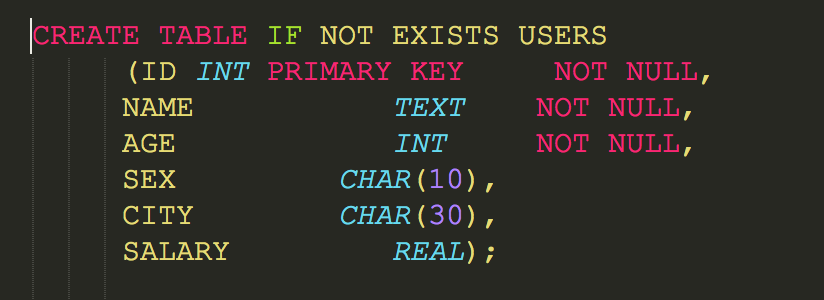 数据库其实就是一个一个表,然后维护这些表之间的爱和情仇,如何建表呢,简单,用SQL语句建表,SQL语句还是很通俗易懂的: