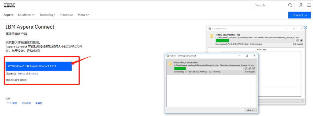 下载Aspera connect的浏览器插件进行下载。https://www.ibm.com/aspera/connect/
