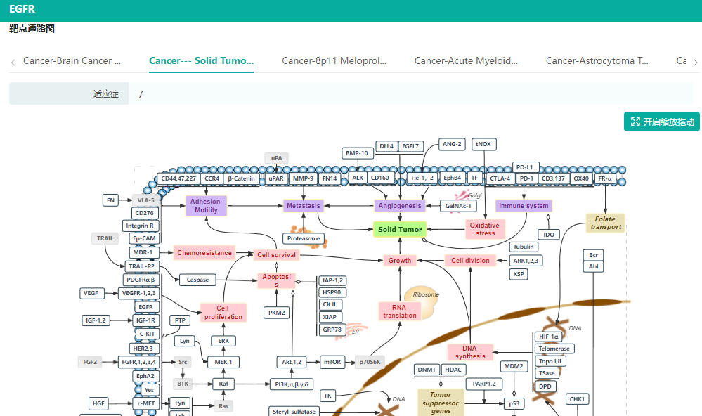 通过药物靶点的层级关系图,可以看出,EGFR的下层靶点还包括HER2/HER3/HER4等。