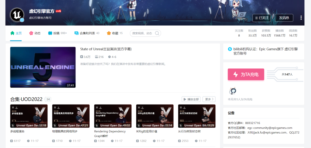 △虚幻引擎社区在视频平台的官方账号,不但更新及时,还时常搞直播互动发福利