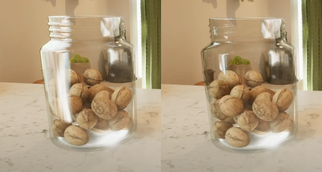 △右图是5.1版本中Lumen在玻璃材质上的效果