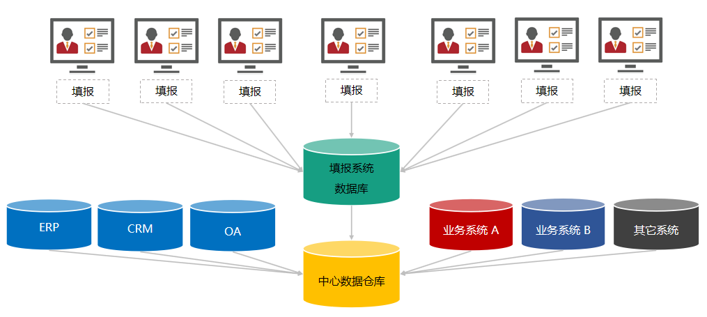 此外,数据库和数据仓库最不同的还是服务对象和作用。上边也提到了,数据库基本上是服务于各个部门,是业务信息系统的附属品,也就是我们常在信息化建设初期中提到的ERP、OA、CRM等业务系统。这些数据库是服务于各种业务系统以及业务软件,主要是通过业务流程发挥作用。