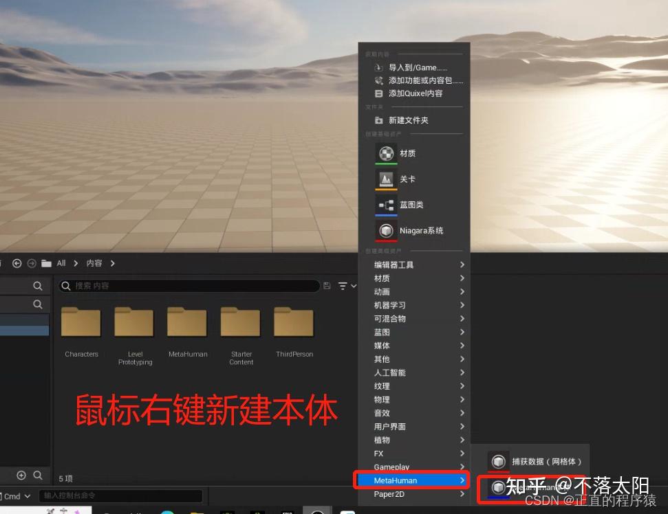 3. 内容目录新建一个MetaHuman本体;