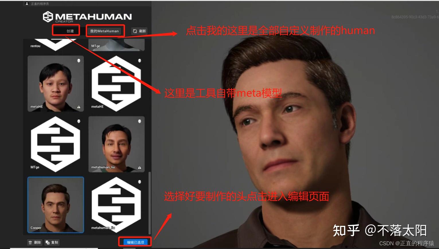 6. 这里需要等待激活MetaHuman Create功能网页,选择要进行制作的human点击“编辑已选项”;