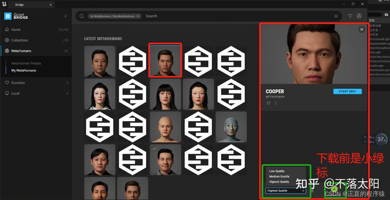 按照喜好捏完后回到UE5打开Bridge,进行下载导出即可(具体如何使用Bridge可参见:404